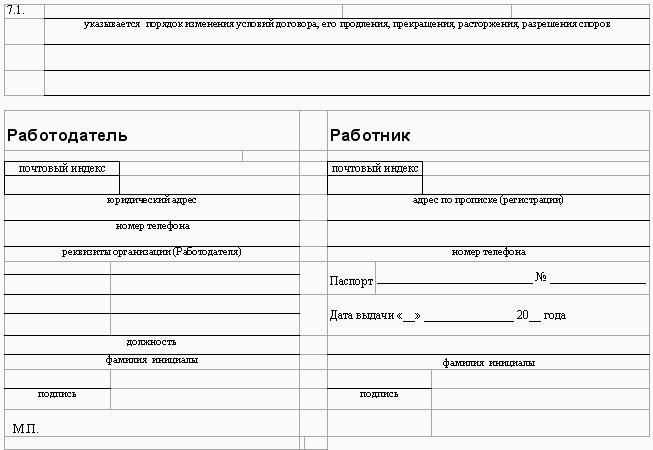 бланк предварительного трудового договора